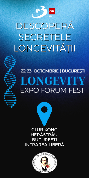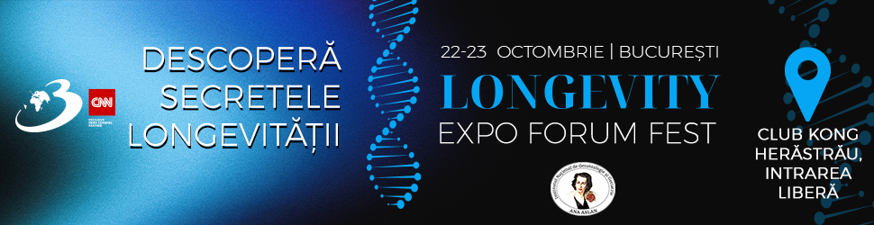 În București, pe 22-23 octombrie are loc Longevity Expo Forum Fest, un eveniment dedicat inovațiilor în domeniul sănătății și longevității care se va desfășura la Club Kong, reunind lideri de opinie, experți și pasionați din domeniul biotehnologiei, nutriției, fitness-ului și sănătății integrative.