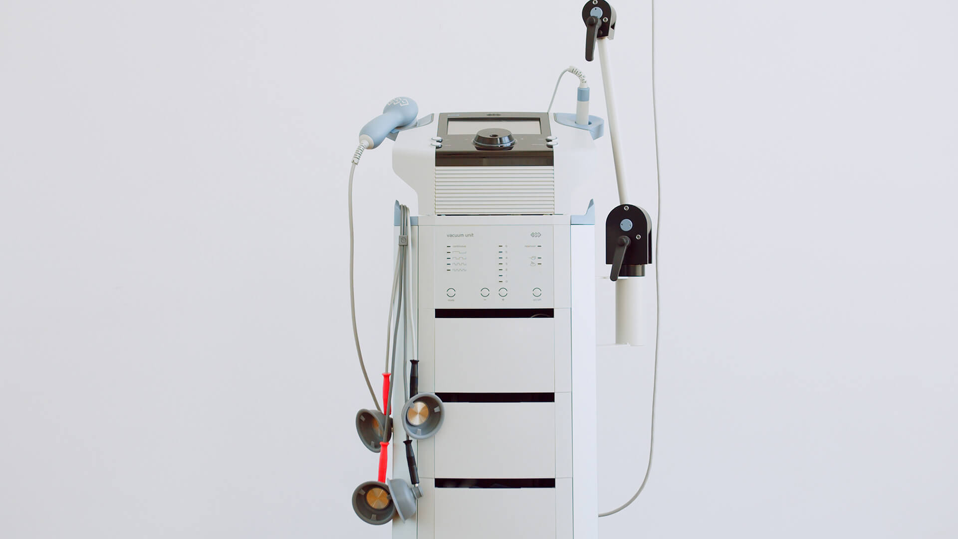 Unitatile combinate de fizioterapie din dotarea bazei de tratament reprezinta sisteme moderne care includ 3 module terapeutice: electroterapie, ultrasunet si laser plus unitatea vacuum. Aceste dispozitive ofera cea mai variata selectie de forme de curent in protocoale organizate in functie de efectul terapeutic dorit si in secvente programabile. Permit o navigare usoara pe zone anatomice si formule terapeutice prestabilite.